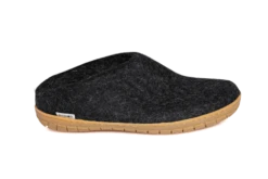 These wool charcoal shoes with a natural rubber sole are designed to envelope your feet in warm snug comfort. The Slip-On Charcoal Rubber is made of natural wool and avoids unnecessary chemicals and uses only colours that are free of heavy metals and toxic dyes. Traditional felting craftsmanship and a sole of semi-vegetable tanned calfskin allows these slippers to adjust to your foot shape after just a few uses, making them more comfortable with each wear. These shoes are best worn sockless as the wool’s breathable moisture-wicking properties ensure less perspiration and a natural odor-free environment while the unique felting process removes the itch of wool keeping feet in blissful warm comfort. Inside, a double layer felted wool insole provides cushioning and enhanced durability. A lightweight flexible leather outsole delivers secure traction and ensures no static electricity is generated when worn.