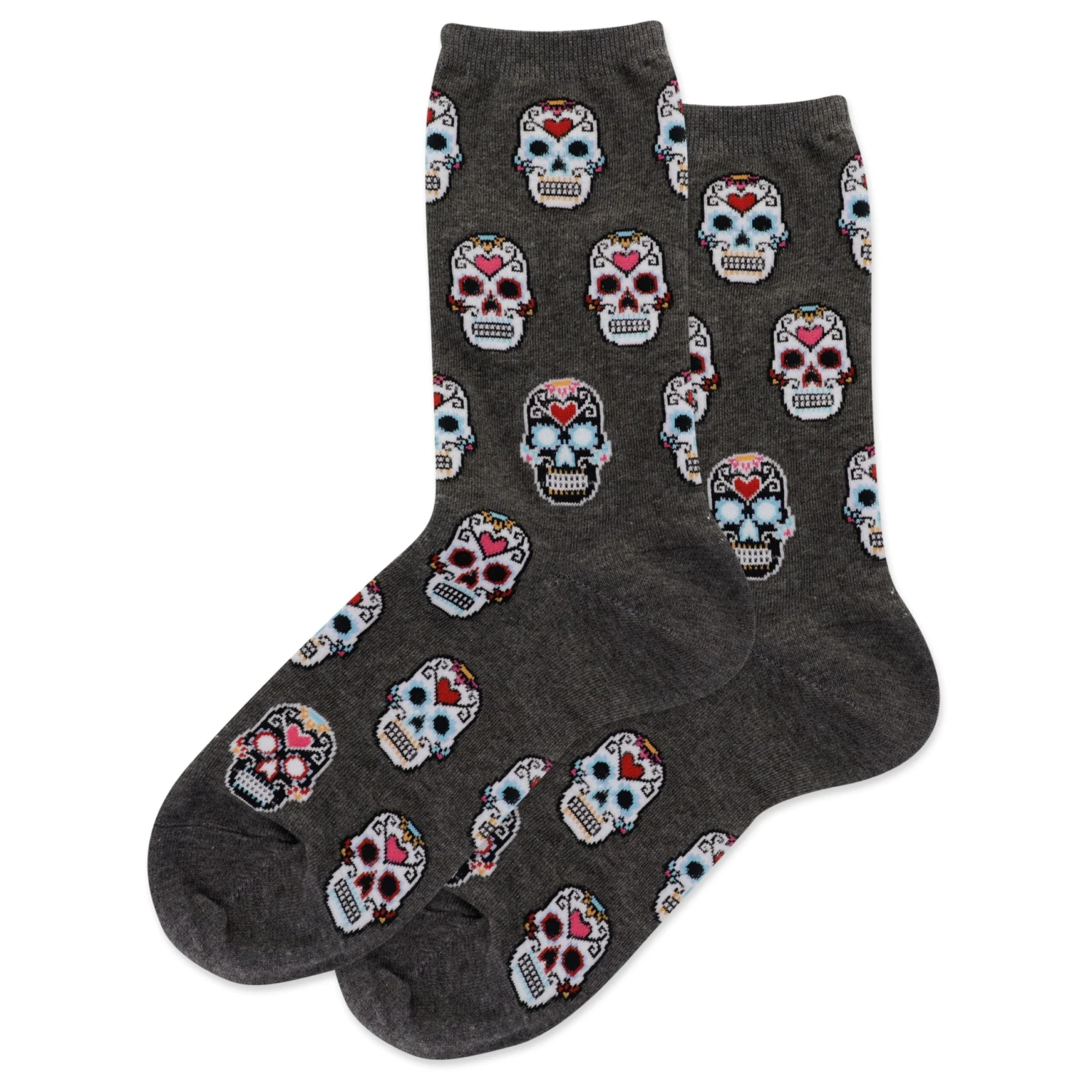 Funky vibes elevate these sugar skull printed socks. Take your sock game to dapper new heights with these unique printed crew socks from Hotsox.