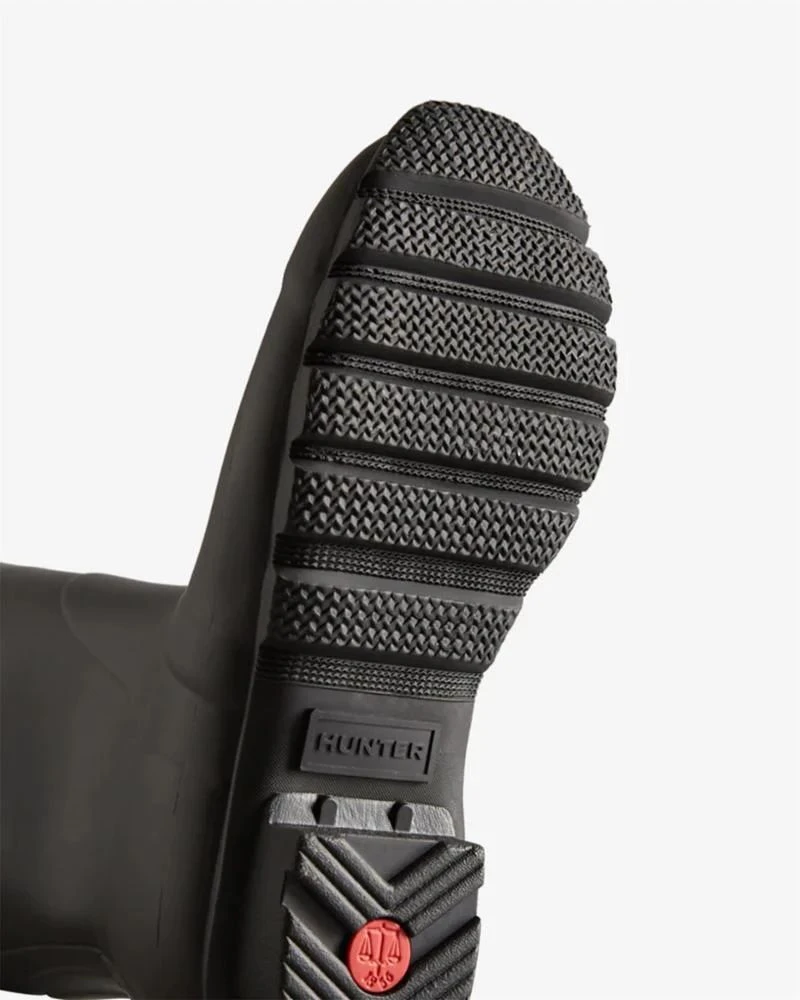 Designed for a flexible fit, the Hunter Original Tall Adjustable Boot mirrors the iconic Original Tall with the addition of an expandable gusset at the back. Perfect for a wider calf, these matte boots in classic black offer ease of movement and adjust from the traditional tailored Hunter fit to a more relaxed shape when the gusset is fully extended. Handcrafted from natural rubber, the Original Adjustable boot is fully waterproof with a comfortable polyester lining and the signature Hunter Original tread.