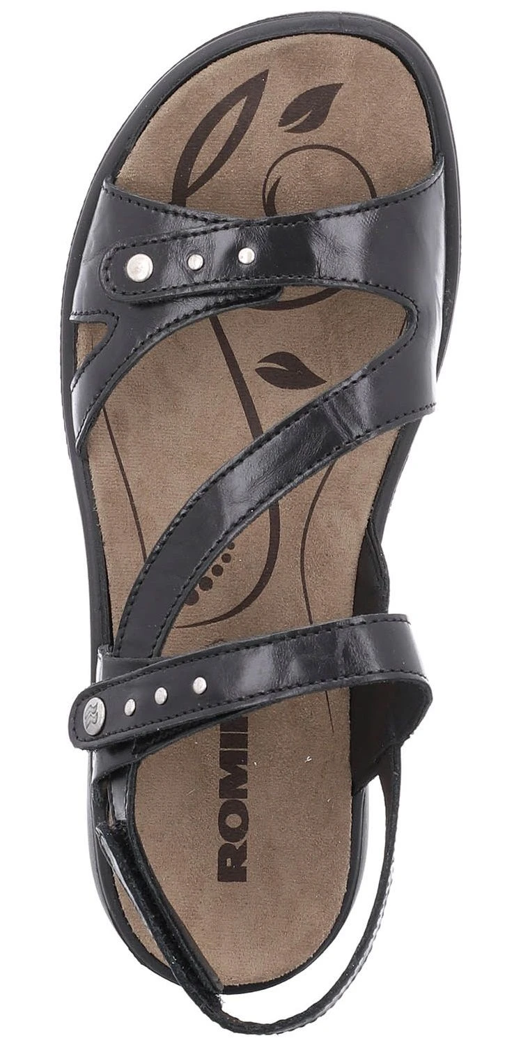 Give your feet the support they need with the Ibiza 70 slingback sandal from Romika. With a contoured footbed and molded heel, you’ll never want to take this pair of sandals off! These sling-back sandals feature a leather upper with asymmetrical strap details and silver studs for a stylish look. Three adjustable straps with Velcro closure, one at the forefoot, one at the instep and another at the back ensure a secure and customized fit. Inside, a soft lining and a lightly padded insole ensure breathable comfort and support. A durable, flexible, lightweight polyurethane outsole delivers shock-absorbing comfort and stable traction.