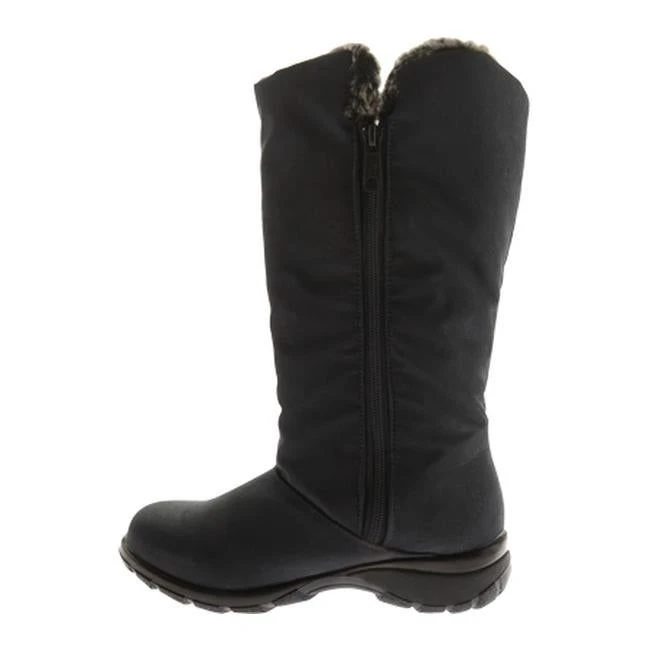 Keep it functional this winter donning these Toe Warmers Janet winter boots. This mid-calf waterproof black boot features a side zipper closure for an easy on and off and a faux fur collar and a molded Warmtex sock lining for warmth and comfort. A TPR outsole provides durable grip and traction.