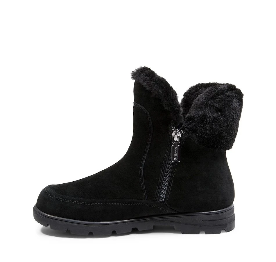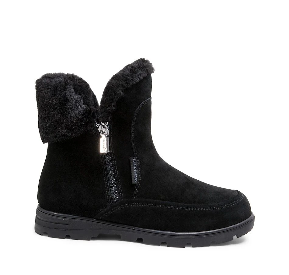 These boots will keep you cozy and stylish all winter long. Crafted from high quality AquaProtect® waterproof suede, this boot features sealed seam construction to protect feet from the elements. Dual side zippers ensure ease of wear while the interior is lined in a warm faux fur. A rubber outsole provides durable traction. Heel height: 1 inch. Shaft height: 6 inches. Circumference: 10 inches. Warm Zone -31˚C.