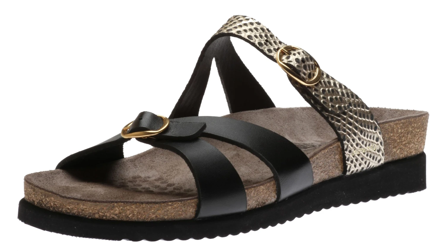 Stylisth yet comfortable, add a touch of glam to your summer wardrobe with these beautiful, textured Hannel slide sandals by Mephisto! Ultra-comfortable with its anatomic correct footbed, cork midsole and multi-layered footbed integrated with Soft-Air Technology to reduce shock, it’s hard for any other sandal to compete. Adjustable instep straps ensures a secure fit and an EVA outsole absorbs shock and reduces stress put on your feet, legs and back. Try these Mephisto sandals and never look back!