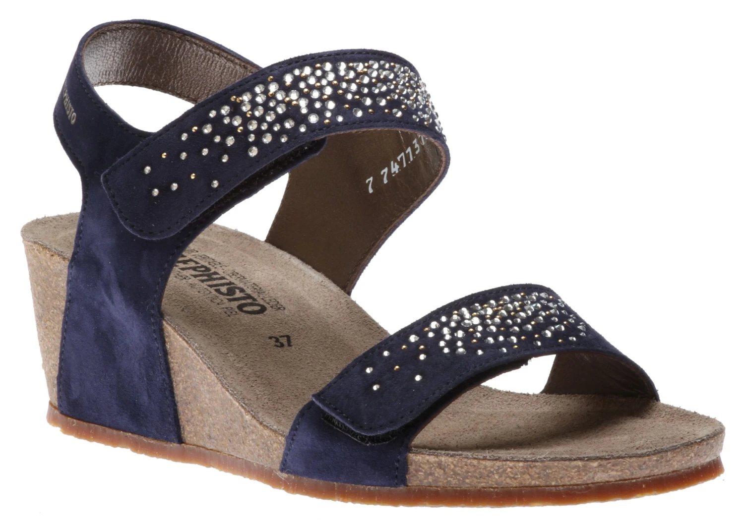 If you are looking for a sandal that provides a little height and works nicely with jeans, sundresses or summertime shorts, look no further. Add a splash of sparkle to your summer wardrobe with these beautiful Maria wedge sandals by Mephisto! Ultra-comfortable with its anatomic correct footbed, cork midsole and multi-layered footbed integrated with Soft-Air Technology to reduce shock, it’s hard for any other sandal to compete. Adjustable straps with a Velcro closure ensures a secure fit and an EVA outsole absorbs shock and reduces stress put on your feet, legs and back. Try these Mephisto sandals and never look back!