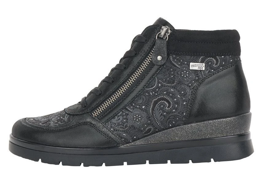 The Korfu wedge ankle boot will pair perfectly with any outfit during periods of transitional weather in the fall, winter and spring. From a day at work to a night out on the town, this black boot will keep you looking stylish and feeling comfortable. Featuring a leather and imitation leather upper, the Cristallino ankle boot features a classic simple design with a beautiful paisley design. The boot also features a warm wool lining enhanced with TEX, a water repellant, moisture-wicking membrane to keep feet in dry comfort, while the dual side zippers allows for an easy on-and-off. The modest block heel will ensure you get all the comfort you need.