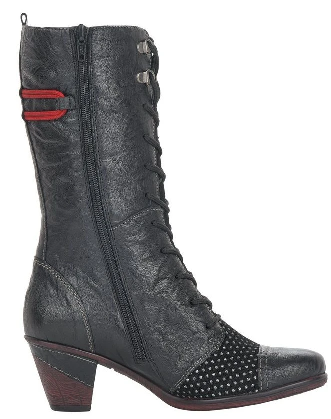 These striking Ottawa ankle boots comprise of contrasting textures and prints for a fun, unique, Victorian-inspired, vintage look. This ankle bootie features a leather upper comprised of a draped panel with metal values at the side, cap toe, contrast stitching, and two stylish prints for a unique look. Adjustable laces, a side zipper and a rear pull tab ensure a secure fit and an easy on-and-off. Inside, a soft textile lining provides warm comfort while a removable insole helps reduce fatigue and deliver all-day cushioning and support. A partially leather-wrapped chunky heel and a durable, flexible, lightweight, thermoplastic rubber outsole provides stable shock-absorbing traction.