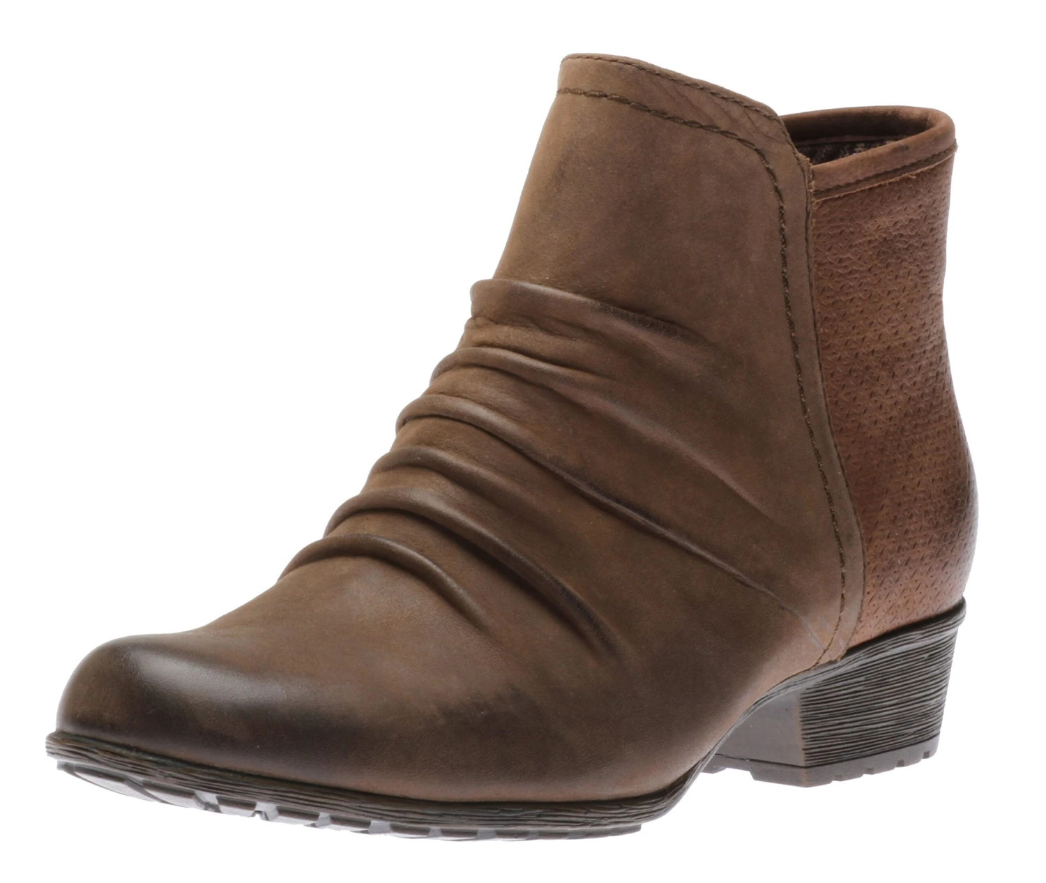 The Gratasha Panel by the Rockport Cobb Hill collections adds a stylish edge to any look. The upper is made of soft yet durable nubuck leather. The flannel lining provides a soft and warm touch. The EVA footbed with a microfiber cover provides comfort and flexibility. A side zipper offers an easy on and off.