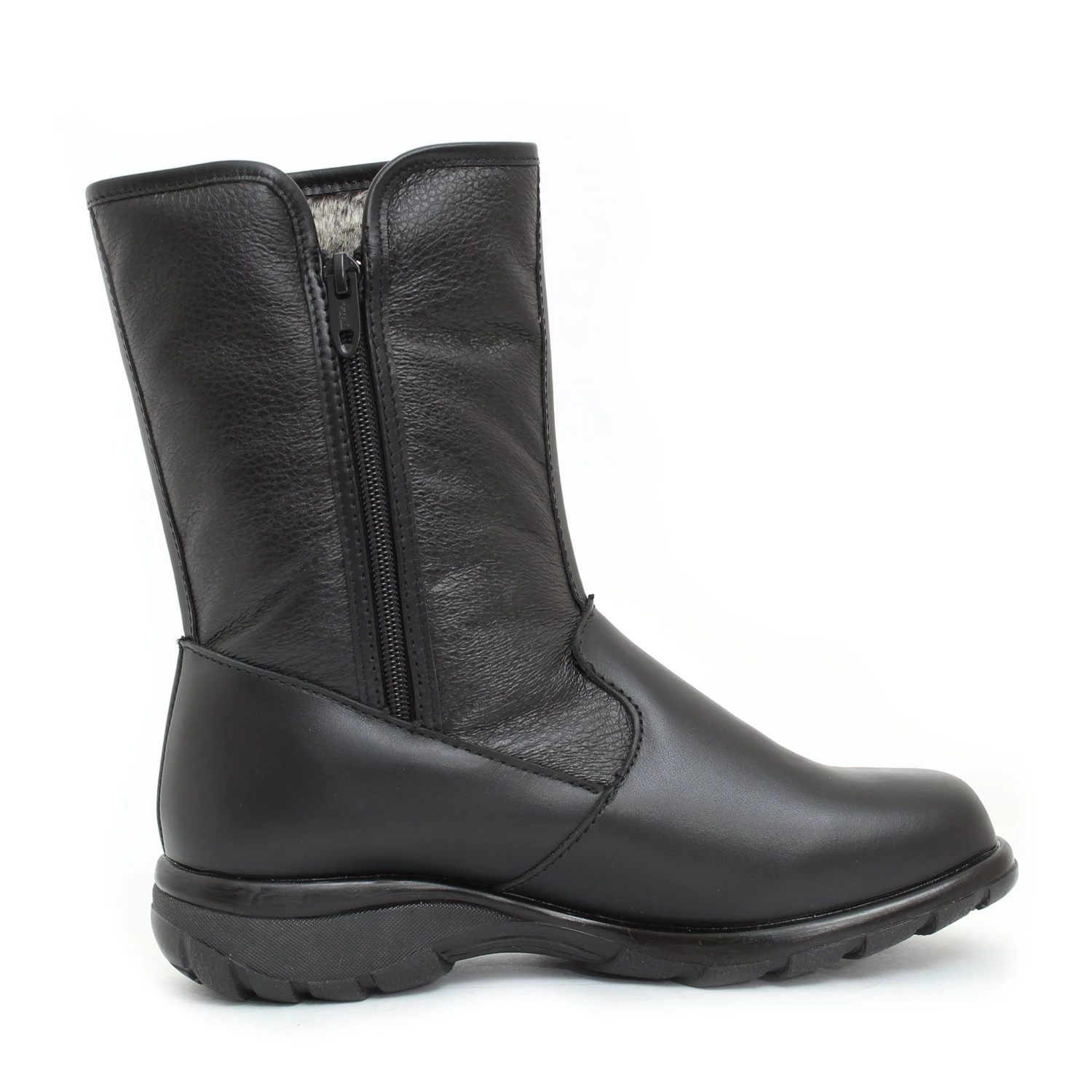 This mid-height waterproof leather boot features a side zipper closure for an easy on and off. A molded Warmtex sock lining delivers warmth and comfort through a snug fit. A TPR outsole provides durable grip and traction.