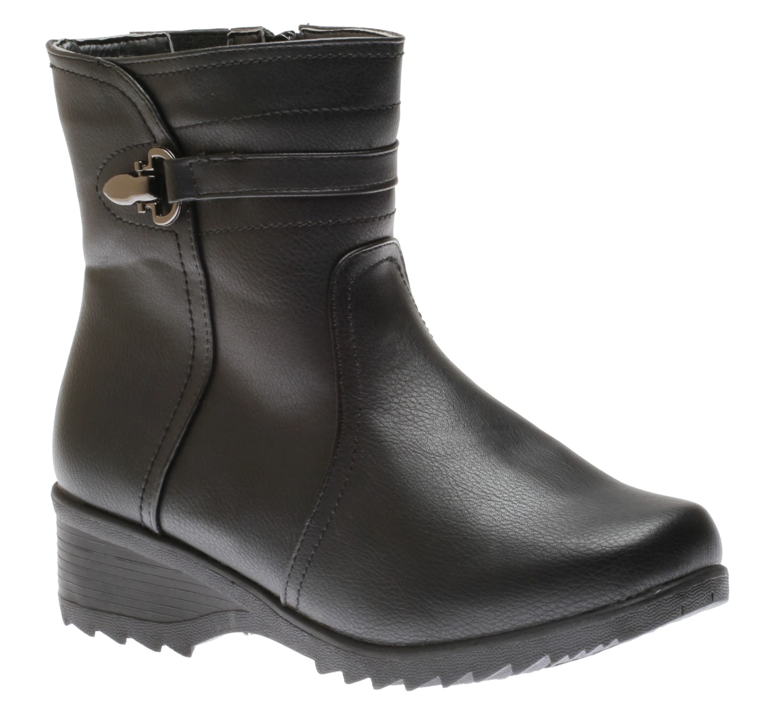 The Side Zipper Ice Grip boot is one of Canada Comfort’s classic best selling styles! It’s a winter weather rated boot featuring waterproof padded vegan leather uppers, a warm fleece lining, padded insoles, a non-slip traction outsole with a built-in Ice Grip system that increases your traction on ice and snow and a comfortable low wedge heel for a little bit of height. A side zipper entry ensures an easy on and off.