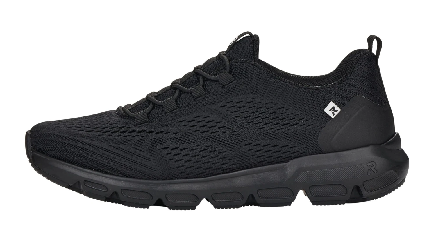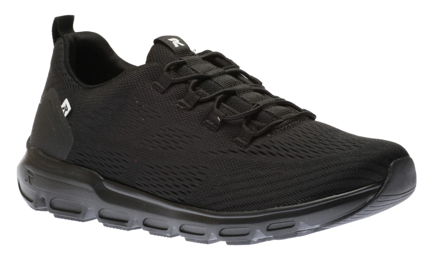 These Sportec12 slip on sneakers by R-Evolution from Rieker will be your go-to sneakers this spring and summer! These sneakers feature a textile perforated upper in a versatile black colour so you can wear them to work or when you’re out and about! Bungee stretch laces ensure a flexible fit while a pull tab at the heel enables an easy on and off. A durable, lightweight, flexible rubber outsole provides stable shock-absorbing traction.