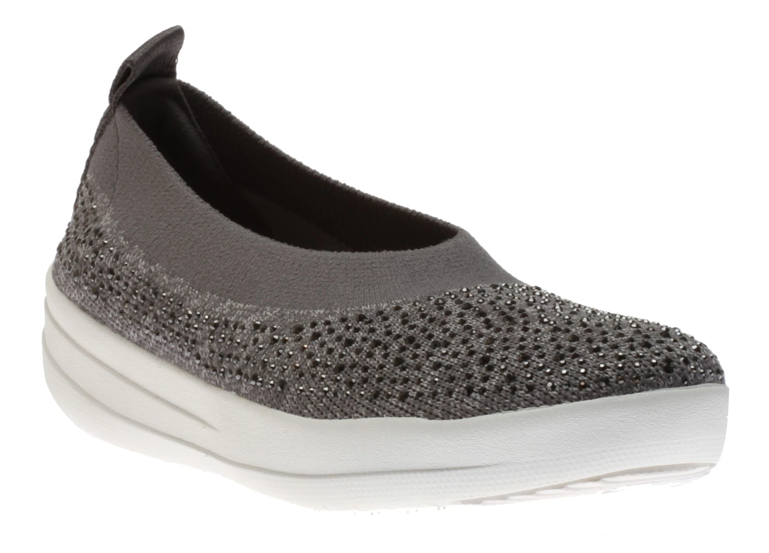 This light-as-a-feather slip-on ballet flat is crafted from a soft, stretchy nylon mix knit with multi-tonal crystals for an ultra-flexible breathable wear. An elasticated collar ensures an easy on-and-off while the interior features Anatomicush midsole technology consisting of ultra-flexible, anatomically curved cushioning for maximum support. An anatomically contoured, mesh-lined footbed increases foot-to-midsole contact for maximum comfort. A lightweight anatomical cushioned sole with slip-resistant rubber pods at the front and back delivers shock-absorbing flexible traction while flex lines cut across the bottom allow greater freedom of movement.